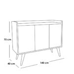 ارتفاع 75 سم، عرض 140 سم، عمق 40 سم