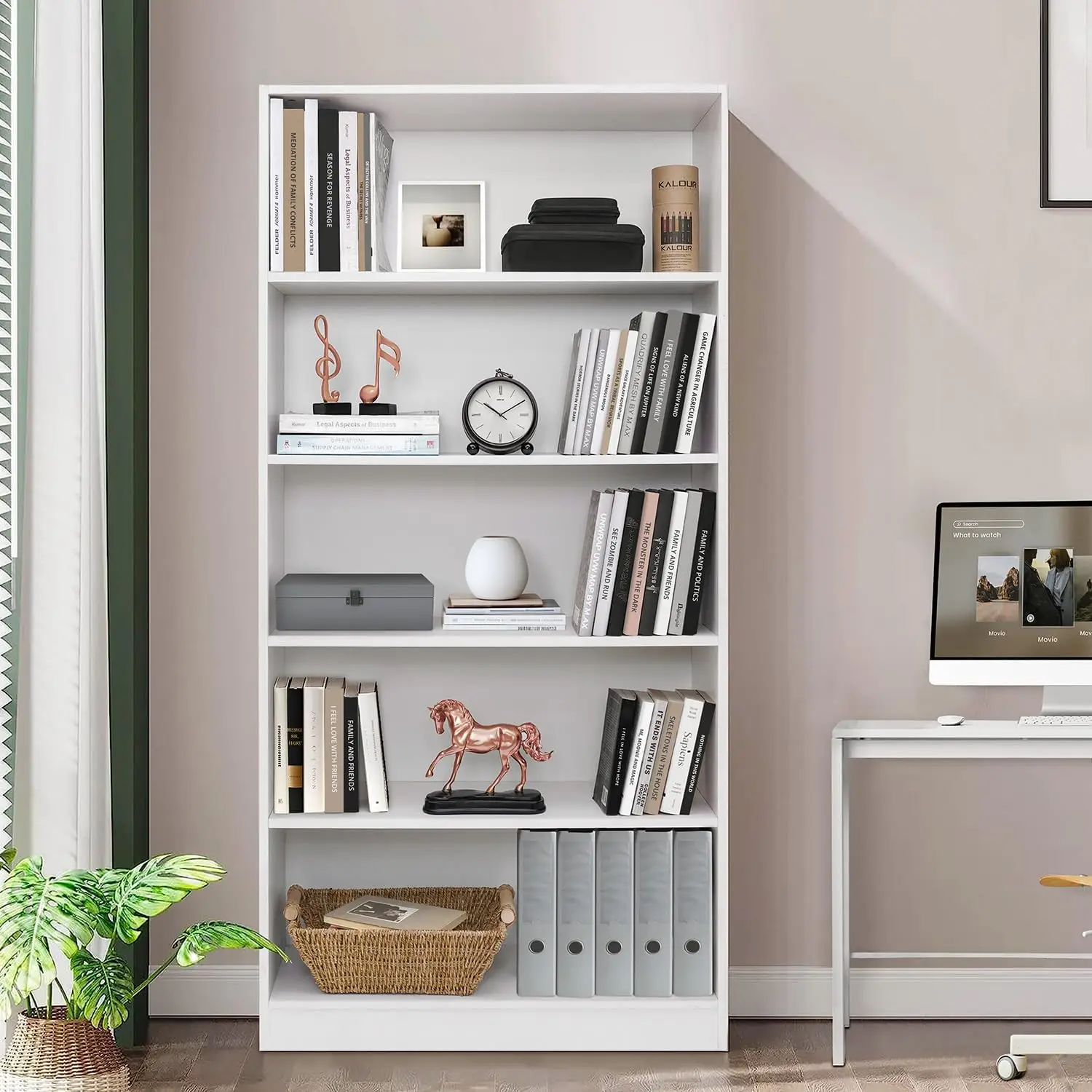 رف كتب خشب 5 طبقات أبيض BK009