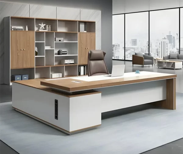 الخامات المتينة تضمن ثبات وقوة المكتب لفترات طويلة، مع لمسات تصميم تجمع بين البساطة والفخامة.
