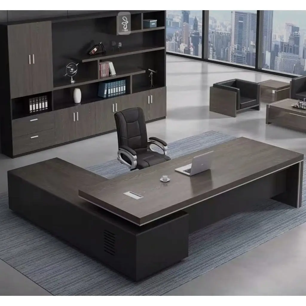 مكتب مدير بتصميم فاخر يجمع بين الشياكة والوظائف العملية. مصنوع من خامات قوية وعالية الجودة، بسطح واسع يسمح بتنظيم كل مستلزماتك بسهولة، مع أدراج ومخازن صغيرة لتخزين المستندات والأوراق.
