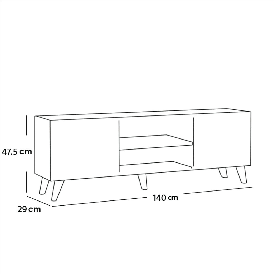 ارتفاع 47.5 سم، عرض 140 سم، عمق 29 سم